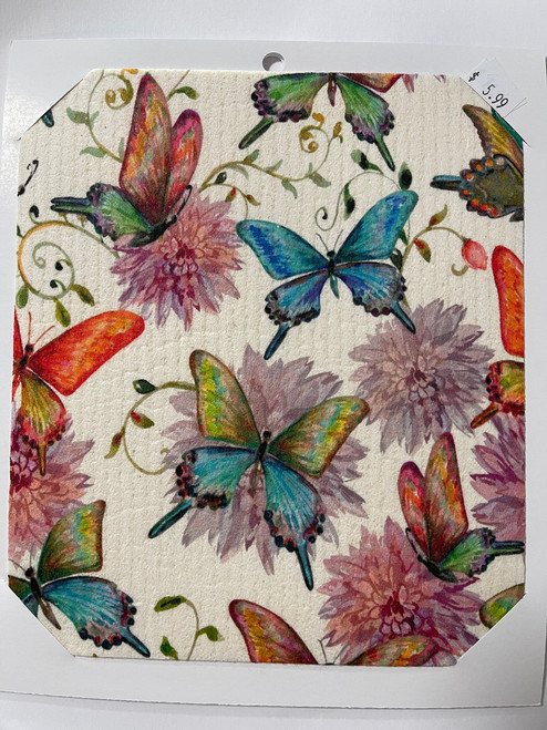 CJ Bella Co Eco-Friendly Dishcloth - Butterfly On Flowers