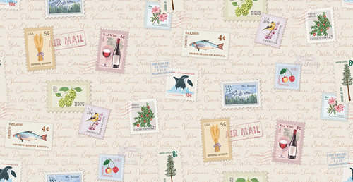 Riley Blake Designs - 2026 Washington Shop Hop Fabric - Cream Stamps Print - Sold By The Half Yard